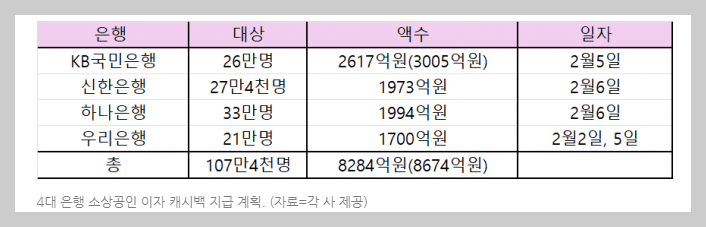 💵 이자 캐시백은 작년에 이자를 납부한 기간이 1년 이상인 소상공인과 자영업자를 대상으로 합니다.